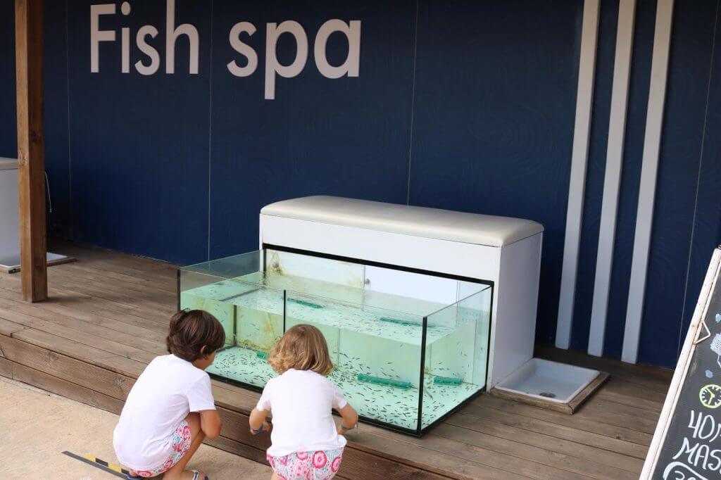 Há duas zonas de piscinas, escorregas e brincadeiras só para crianças, são parques aquáticos infantis pensados na diversão dos mini aventureiros.